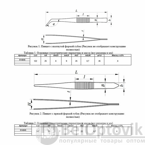 • прямой пинцет – для захвата плоских деталей;