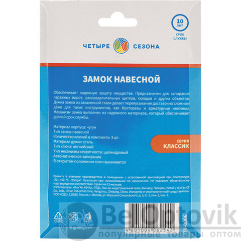 Навесной замок идеально подходит для защиты вашего имущества от непрошенных гостей. Замок пригодится для запирания гаражных ворот, распределительных щитков, складов и других объектов. В комплекте с замком идет 3 ключа.