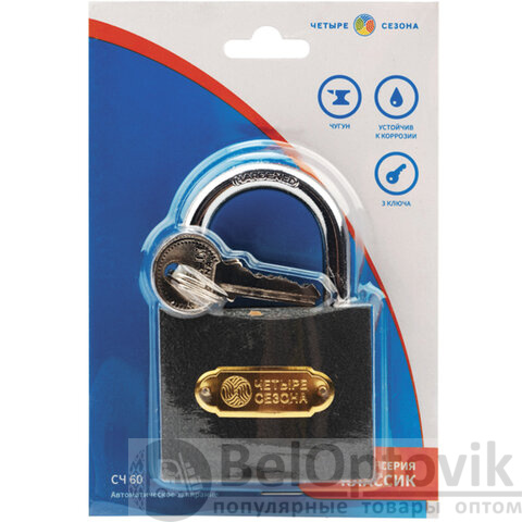 Замок навесной, ширина 60 мм, чугун, дужка d-8,4 мм, английский, 3 ключа, в блистере, 79-0006