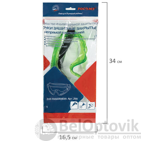 Очки с непрямой вентиляцией с панорамным защитным бесцветным стеклом с покрытием Абсолют. Мягкий корпус из ПВХ. Регулируемая наголовная лента.
