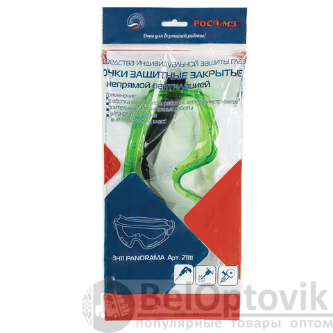 Очки защитные закрытые РОСОМЗ ЗН11 Panorama, прозрачные, непрямая вентиляция, поликарбонат, 21111