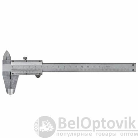 Металлический штангенциркуль с глубиномером, со шкалой 150 мм, со значением отсчета по нониусу 0,02 мм используется для быстрого определения размеров внутри и снаружи деталей, а также глубин отверстий и канавок — для этого предусмотрен глубиномер.