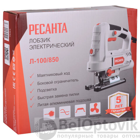 Лобзик сетевой, 850 Вт, 3000 ход/мин, глубина реза 100 мм, РЕСАНТА Л-100/850 75/9/4