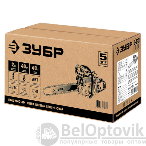 Бензопила ЗУБР ПБЦ-М40-40, 1500 Вт, 11000 об/мин, объем двигателя 40 см3, 2 л.с., ПБЦ-М40-40