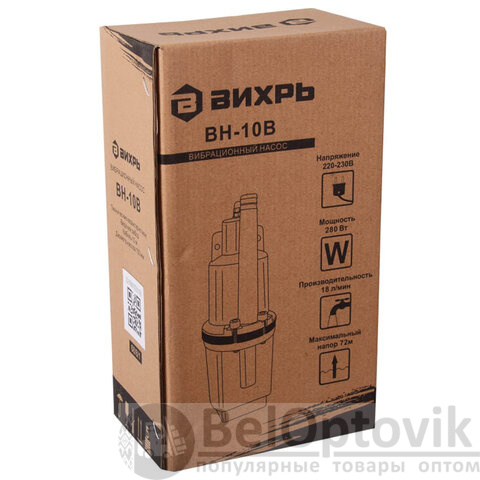 Вибрационный насос Вихрь ВН-10В предназначен для перекачивания воды из водоемов, колодцев и резервуаров диаметром более 110 мм. Имеет электрический двигатель мощностью 280 Вт, который обеспечивает напор до 72 метров и производительность до 18 л/мин.