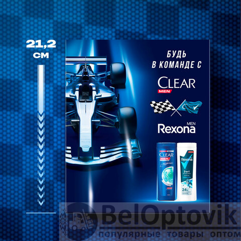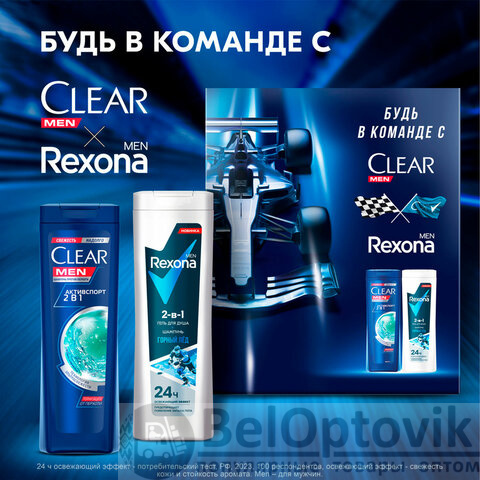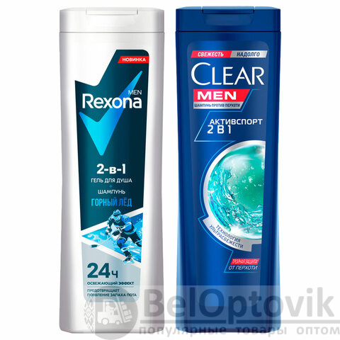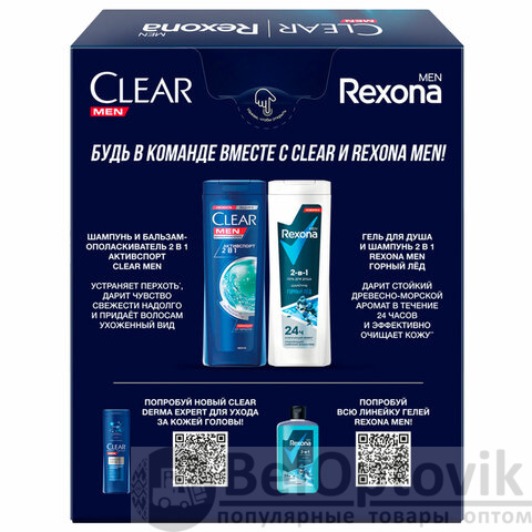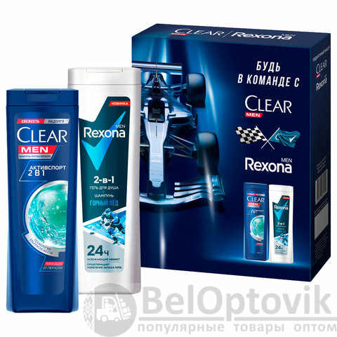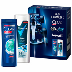 Подарочный набор из шампуня CLEAR и геля для душа/шампуня REXONA MEN для эффективного очищения волос и тела и ощущения свежести на весь день.