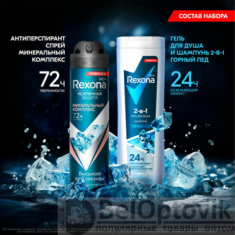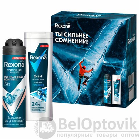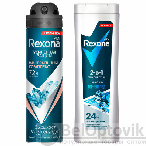 Подарочный набор REXONA MEN: Гель для душа и шампунь 2 в 1 (180 мл) + Спрей-антиперспирант (150 мл)