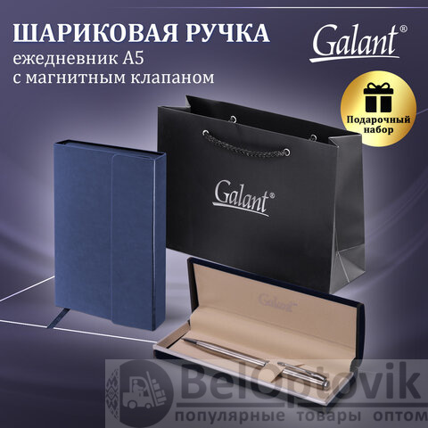 Ручка шариковая GALANT "Arrow Chrome", корпус серебристый, ежедневник недатированный, А5, синий, пакет, 880903