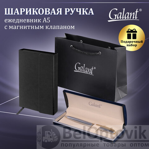 Ручка шариковая GALANT "Marburg", корпус серебристый, ежедневник недатированный А5 черный, пакет, 880905