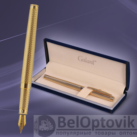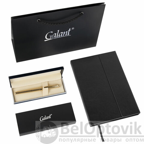 Ручка перьевая GALANT Versus, корпус золотистый, ежедневник недатированный А5 черный, пакет, 880906