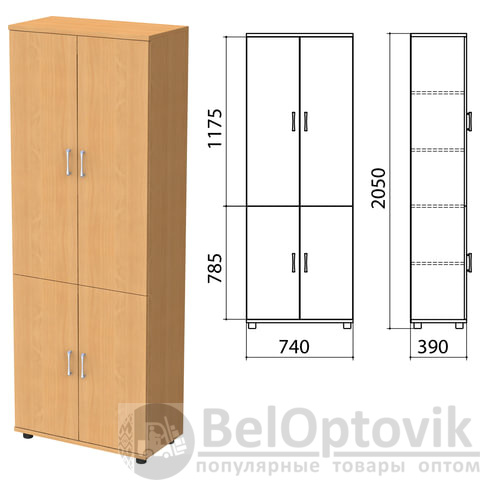 Шкаф предназначен для хранения документов и других предметов обихода. Полки стационарные. Регулируемые опоры позволяют компенсировать возможные неровности пола.