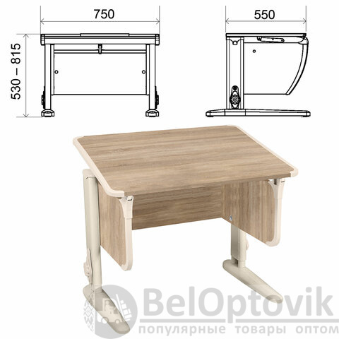 Стол-парта регулируемый "ДЭМИ" СУТ.41, 750х550х530-815 мм, бежевый каркас, пластик бежевый, дуб сонома (КОМПЛЕКТ)