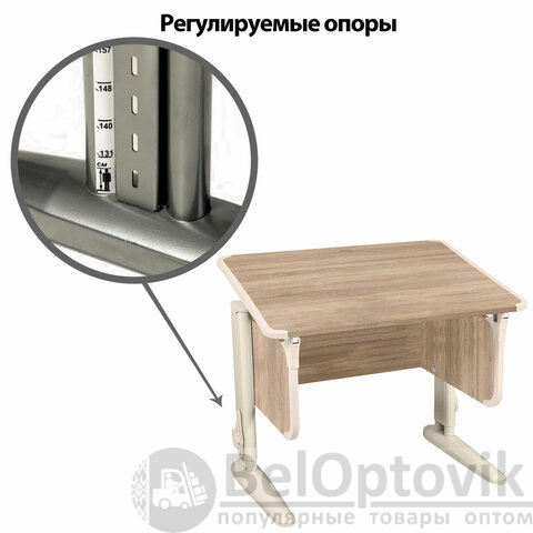 Опоры регулируемые, позволяют менять высоту парты от 530 до 815 мм, помогая сохранять правильную посадку, защищая от сколиоза и остеохондроза.