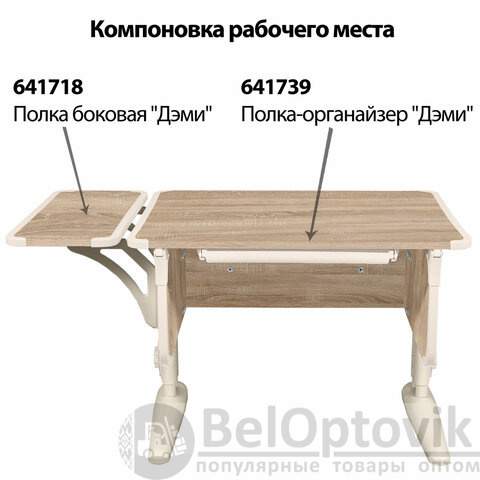 Парта «Дэми» идеально подойдет как для школьника начальных классов, так и для студента. Парта оснащена системой регулировки высоты и угла наклона столешницы. Дополнительно парту можно укомплектовать полкой и органайзером, как представлено на доп.фото.