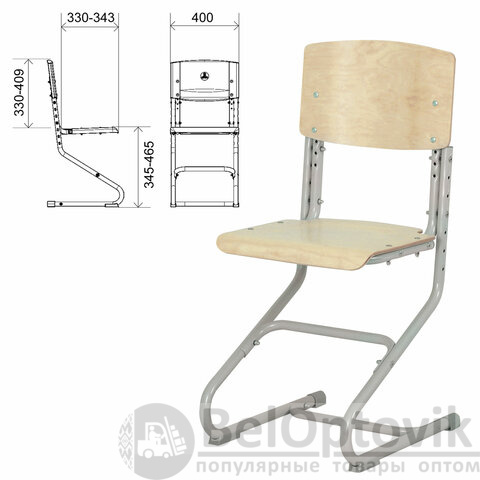 Стул ученический регулируемый "ДЭМИ" СУТ.01, 400х330-343х795-874 мм, серый каркас, фанера лак