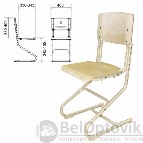 Стул ученический регулируемый "ДЭМИ" СУТ.01, 400х330-343х795-874 мм, бежевый каркас, фанера лак