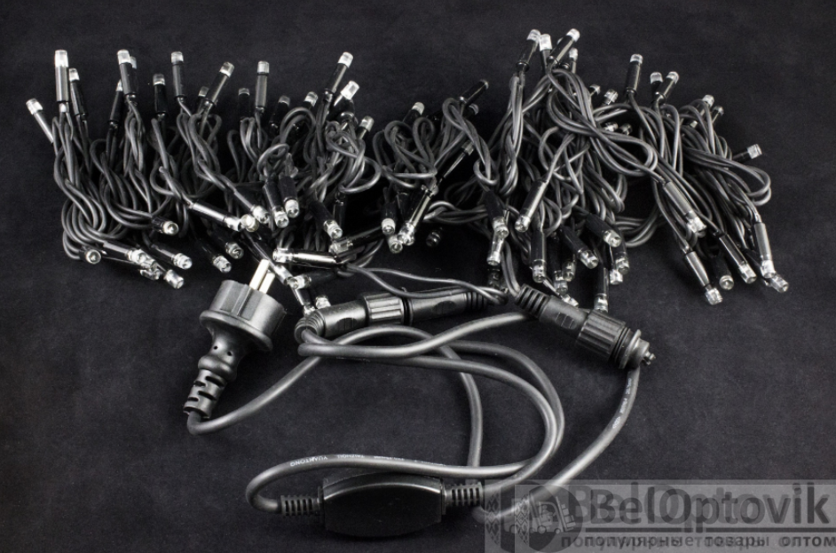 Почему купить Уличная гирлянда IP65 "Нить-каучук 100 LED" 10 м., flash-w, провод черный или белый, мерцает каждый 6 диод оптом выгодно у нас: