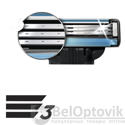 - Количество лезвий в кассете: 3 шт