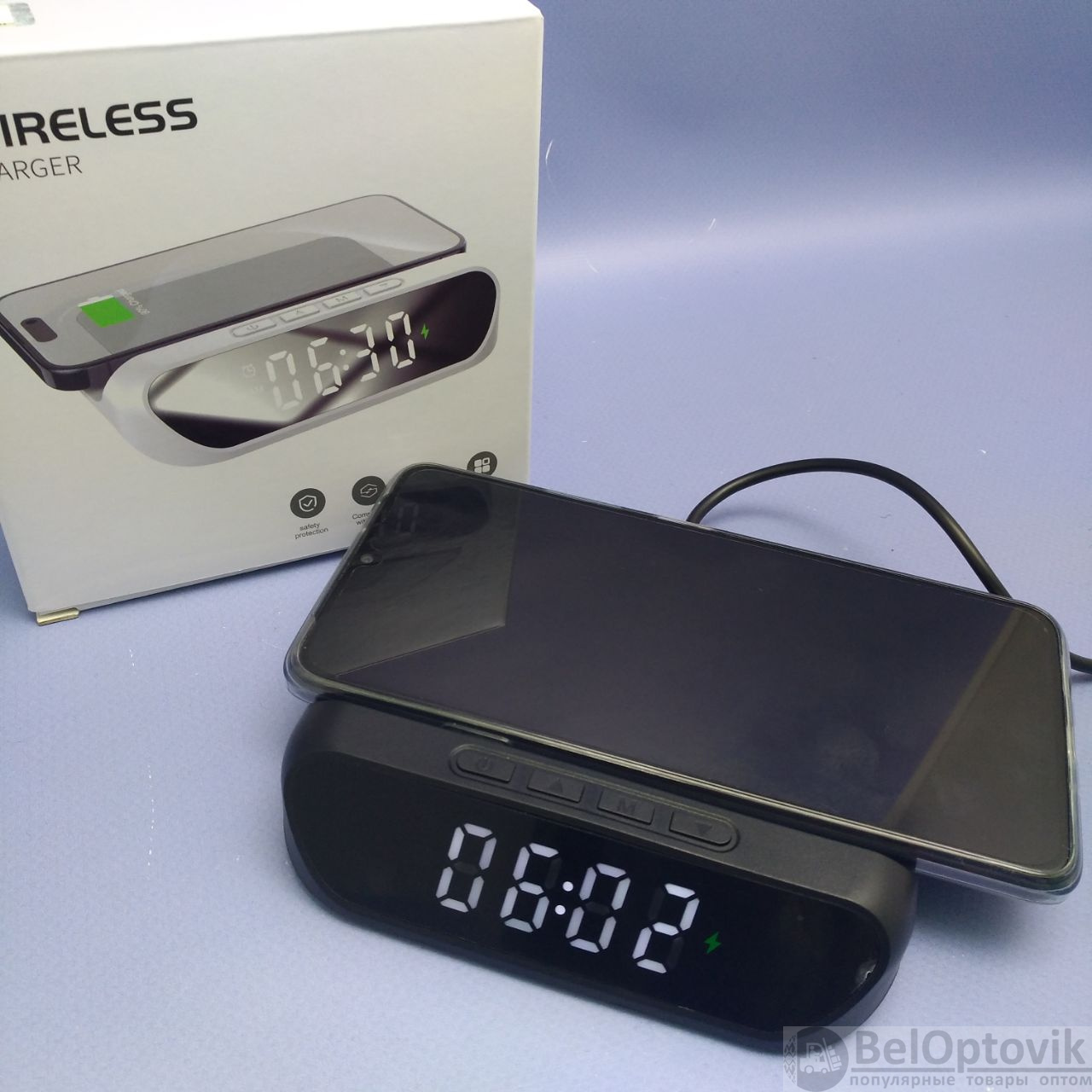 Часы настольные с функцией беспроводной зарядки и будильником – 1 шт.