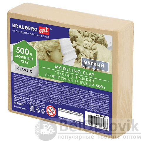 Скульптурный пластилин BRAUBERG ART CLASSIC телесного цвета предназначен для моделирования и создания скульптур, макетов, поделок. Идеально подходит не только для студентов, но и для всех, кто хочет научиться моделированию.