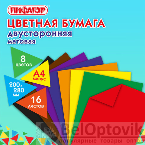 Цветная бумага ПИФАГОР, состоящая из ярких и насыщенных цветов, позволит создать прекрасную аппликацию или поделку. Рекомендована для уроков труда и технологии.