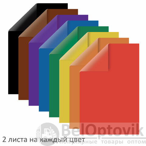 Набор газетной двусторонней цветной бумаги плотностью 50 г/м2 включает 16 листов формата А4 (200х280 мм) в 8-ми разнообразных и насыщенных однородных цветах. Листы скреплены скобами, легко режутся и сгибаются.
