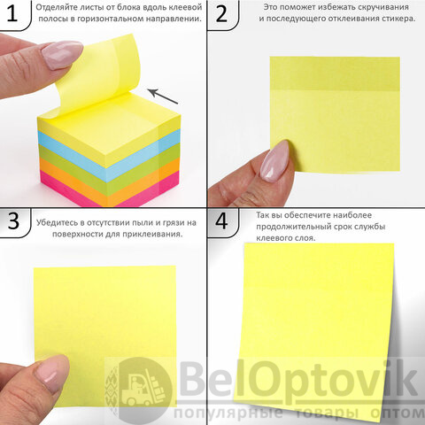 - отделяйте листы от блока вдоль клеевой полосы, в горизонтальном направлении - это поможет избежать скручивания и последующего отклеивания стикера;