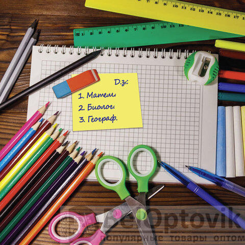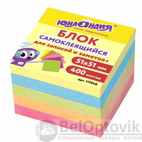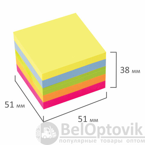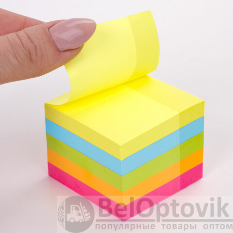 Самоклеящийся блок состоит из 400 листов 5 неоновых цветов. Размер: 51х51 мм. Плотность бумаги составляет 75 г/м2. Клейкий слой - 32 Н/м. Стикеры легко клеятся к любой поверхности, не оставляют следов. Упакованы в полиэтиленовую пленку.