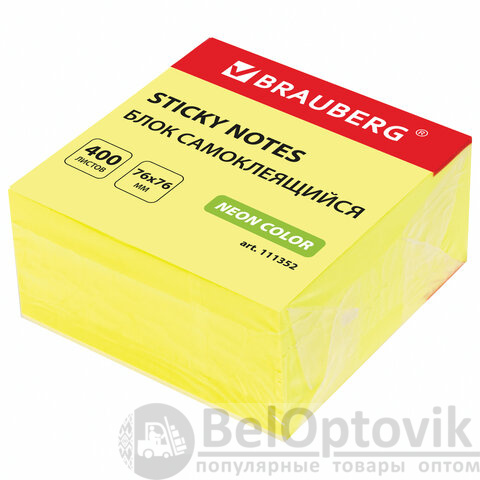 Блок самоклеящийся (стикеры) BRAUBERG НЕОНОВЫЙ 76х76 мм, 400 листов, желтый, 111352
