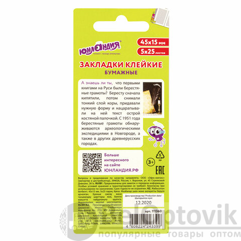 Клейкие закладки ЮНЛАНДИЯ с привлекательным дизайном акцентируют внимание на важных страницах книги или журнала. Крепятся к любой поверхности, сохраняют свои свойства даже при многократном применении.