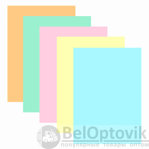 Упакована в пачки по 20 листов формата А4. В упаковке бумага пастельного тона 5 разных цветов: голубой, желтый, оранжевый, розовый и салатовый. Листы бумаги плотностью 80 г/м2 подходят для офисной техники.