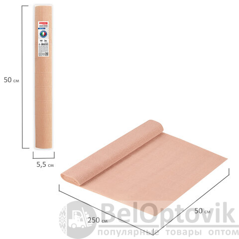 Бумага гофрированная/креповая (ИТАЛИЯ) 180 г/м2, 50х250 см, бежевая (17a4), BRAUBERG FIORE, 112635