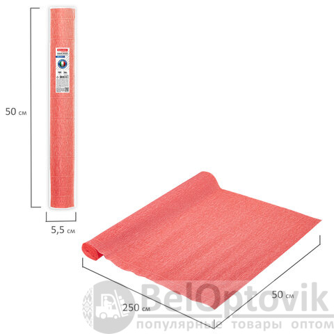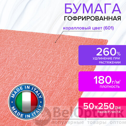 Бумага гофрированная/креповая (ИТАЛИЯ) 180 г/м2, 50х250 см, коралловая (601), BRAUBERG FIORE, 112640