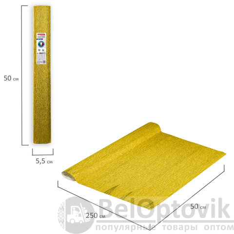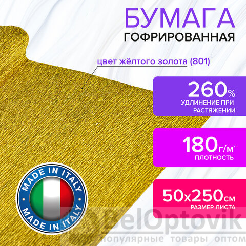 Бумага гофрированная/креповая (ИТАЛИЯ) 180 г/м2, 50х250 см, желтое золото (801), BRAUBERG FIORE, 112657