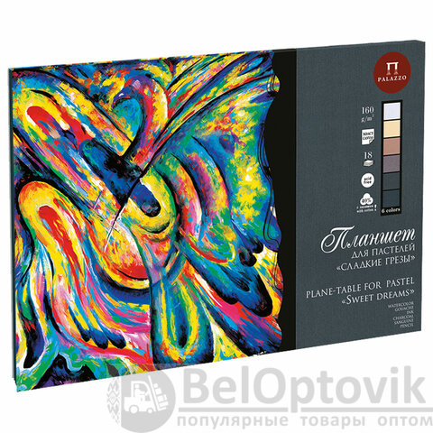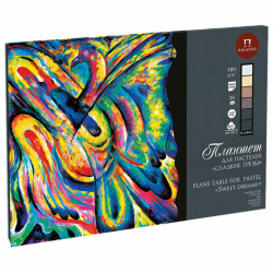 Планшет состоит из 18 листов и 6 цветов пастельной бумаги с жесткой подложкой из переплетного картона. Внутренний блок для удобства проклеен с 2 сторон по корешку.
