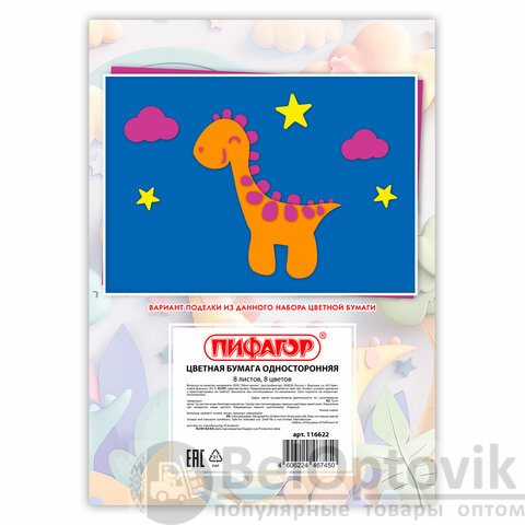 Цветная бумага незаменима при создании аппликаций, поделок и открыток. Товары для детского творчества ПИФАГОР помогут вашим детям создать свои первые шедевры!
