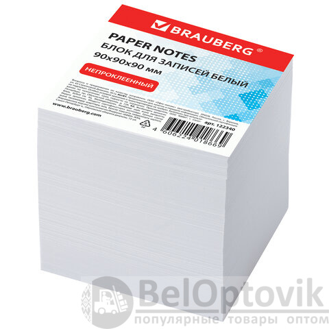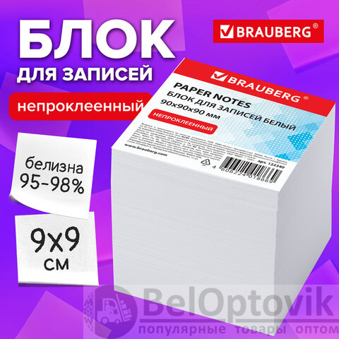 Блок для записей BRAUBERG, непроклеенный, куб 9х9х9 см, белый, белизна 95-98%, 122340