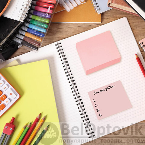 Стикеры розового пастельного цвета в форме квадрата 76х76 мм состоят из 100 листов. Плотность бумаги составляет 75 г/м2. Клейкий слой - 22 Н/м. Легко клеятся к любой поверхности. Не оставляют следов. Упакованы в полиэтиленовую пленку.