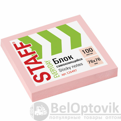 Блок самоклеящийся (стикеры), STAFF, 76х76 мм, 100 листов, розовый, 126497