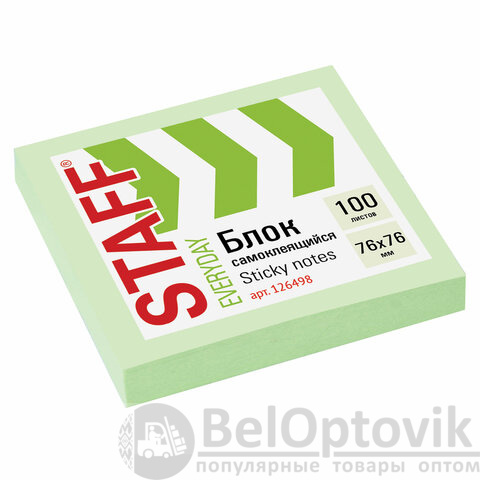 Блок самоклеящийся (стикеры), STAFF, 76х76 мм, 100 листов, зеленый, 126498