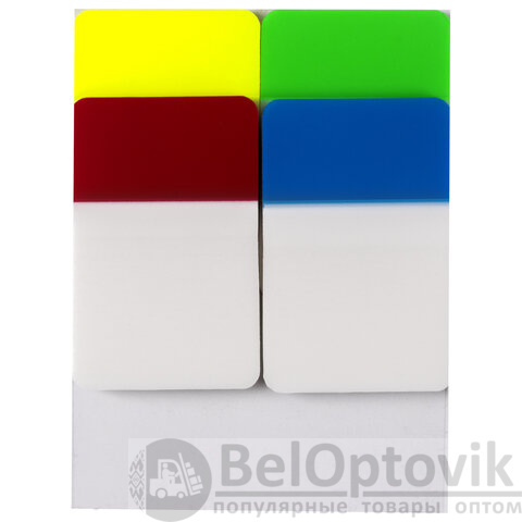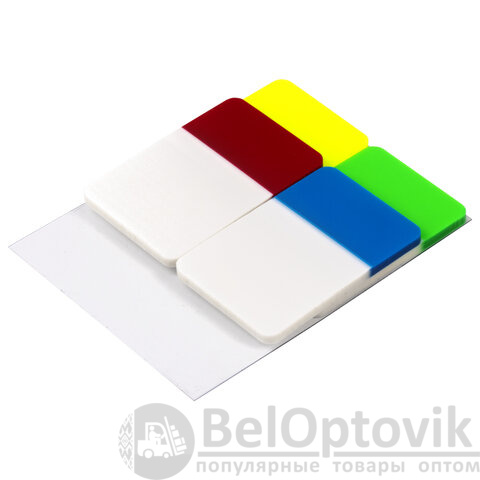 Набор белых пластиковых закладок-выделителей размером 38х25 мм с цветными краями 4 неоновых цветов состоит из 80 листов, по 20 закладок каждого цвета. Клейкий слой - 22 Н/м. Легко клеятся к любой поверхности и не оставляют следов. Материал закладок позволяет делать надписи ручкой и карандашом. Поставляются в полиэтиленовом пакете с европодвесом.