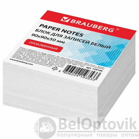 Блок для записей BRAUBERG проклеенный, куб 9х9х5 см, белый, белизна 95-98%, 129195