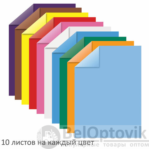Набор цветной бумаги плотностью 80 г/м2 включает 100 листов формата А4 10-ти различных цветов. Листы скреплены между собой специальной клейкой основой. Именно при таком типе скрепления они очень легко и ровно отрываются. В любой момент ребенок может аккуратно вытащить нужный лист и приступить к любимому занятию. Набор упакован в полиэтиленовый пакет с липким краем.
