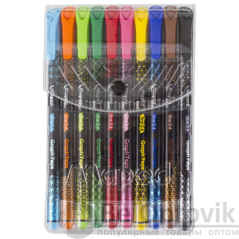 Набор капиллярных ручек (линеров) MAPED 10 шт., "Graph'Peps", АССОРТИ, трехгранные, 0,4 мм, 749050