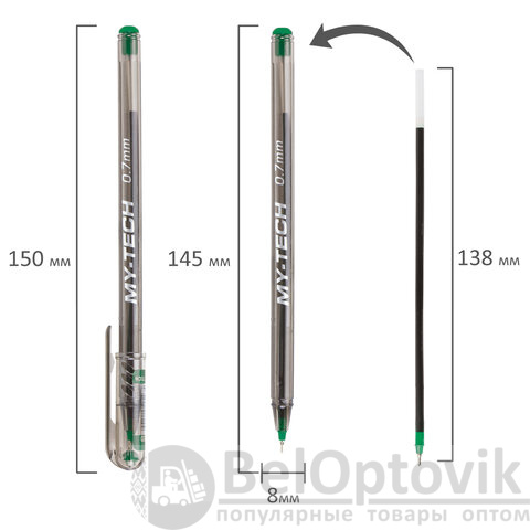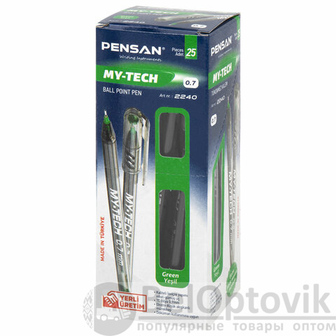 Ручка шариковая масляная PENSAN "My-Tech", ЗЕЛЕНАЯ, игольчатый узел 0,7 мм, линия 0,35 мм, 2240/25