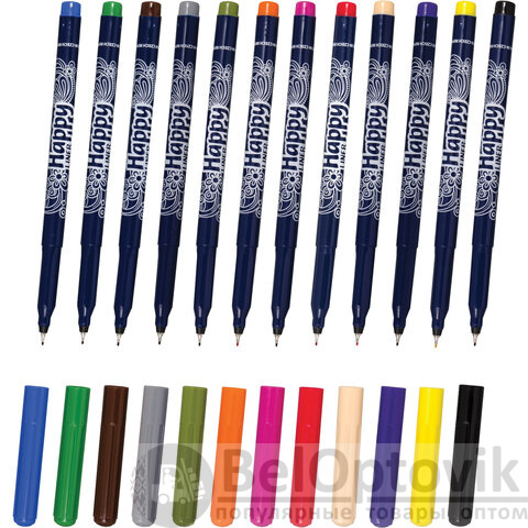 Ручки капиллярные (линеры) 12 ЦВЕТОВ CENTROPEN "Happy Liner", линия письма 0,3 мм, 2521/12, 2 2521 1202