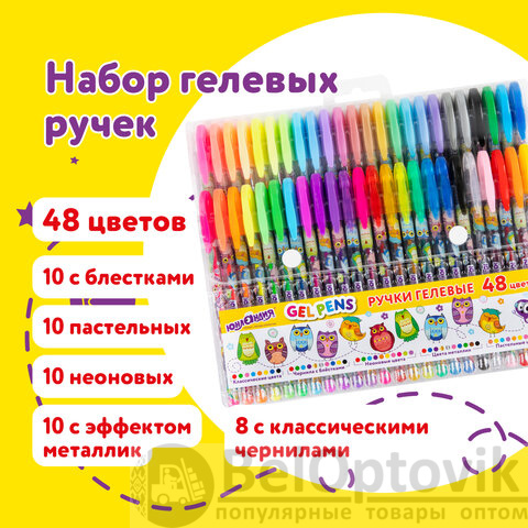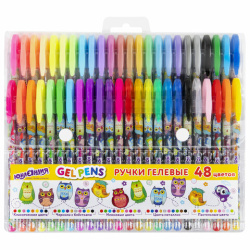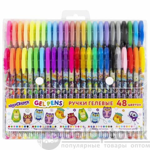 Ручки гелевые НАБОР 48 ЦВЕТОВ, ЮНЛАНДИЯ, корпус с печатью, узел 1 мм, линия письма 0,5 мм, 143820