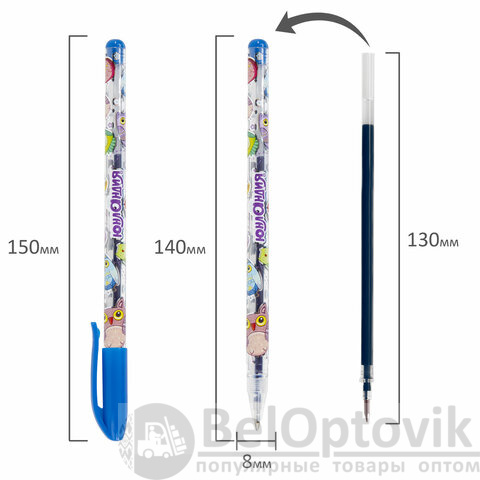 Ручка имеет круглый яркий корпус с печатью. Сменный стержень длиной 130 мм со стандартным наконечником позволит использовать ручку максимально долго. Диаметр пишущего узла, равный 1,0 мм, создает линию письма, равную 0,5 мм. Набор включает 48 гелевых ручек: 8 ручек с классическими чернилами, 10 с блестками, 10 с эффектом металлик, 10 пастельных и 10 неоновых.