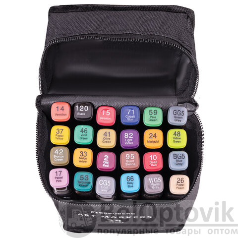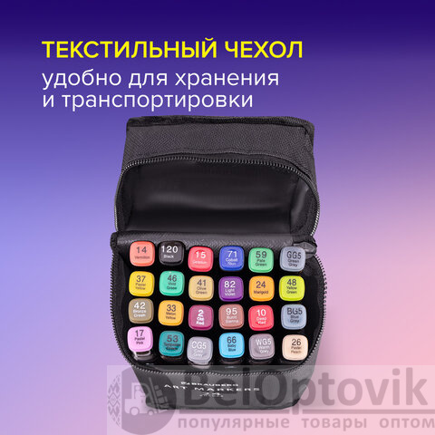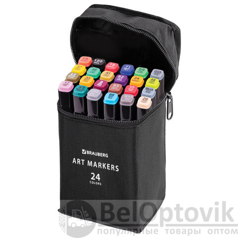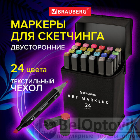 Маркеры для скетчинга двусторонние, НАБОР 24 шт., базовые цвета, в чехле, BRAUBERG, 152295