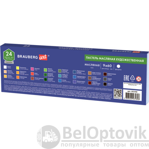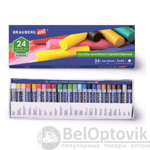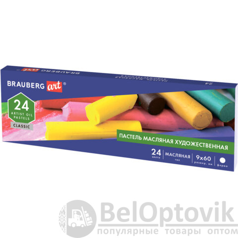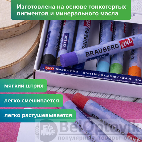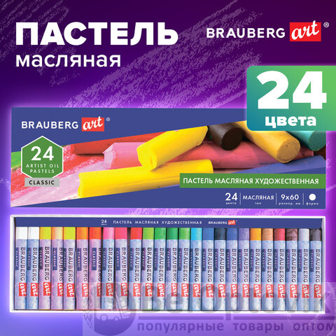 Пастель масляная художественная BRAUBERG ART CLASSIC, 24 цвета, круглое сечение, 181448